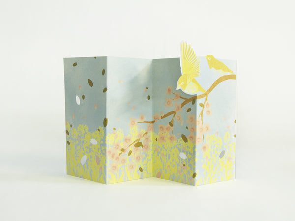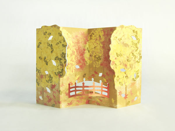 カードを点線に沿って山折谷折に折ると、繊細で雅な和のモチーフが立体に浮かび上がります。完成したカードはインテリアとして玄関やお部屋に、屏風のように飾ったり、巻末に16枚収録されている季節の便箋と一緒にグリーティングカードとしても使えます。ペーパーデザイン・ユニットPORIGAMI(ポリガミ)が手がける、屏風型3Dカードブック。英訳付きで海外の方のお土産にぴったり!